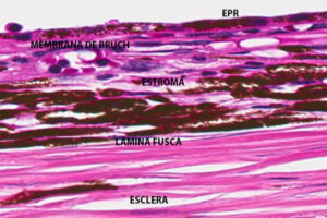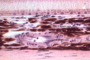 El estroma de las capas vasculares está constituido por tejido colágeno y elástico con un número variable de melanocitos dependiendo de la raza de la persona.