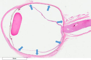 Forma la cubierta media de la parte posterior del ojo y se extiende desde la ora serrata hasta el nervio óptico. Su grosor varía de 0,1 mm en la porción